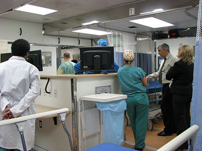 Odulair manufactures Mobile Clinics on many base platforms including truck chassis, ISO containers, and trailers. For those Mobile Health Units on trucks, the tow vehicle is the truck, which is always attached. So, you do not need to worry about how to tow your mobile medical unit. For those Mobile Clinics in ISO containers, They can be moved with any truck that is designed to move either 20 foot or 40 foot ISO containers, depending on the size of your Mobile Clinic.